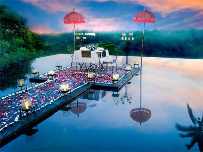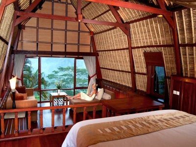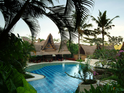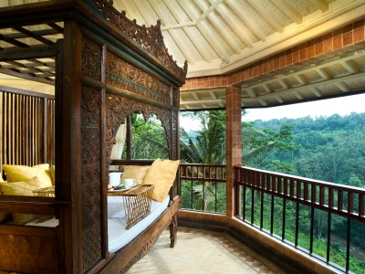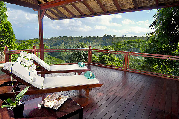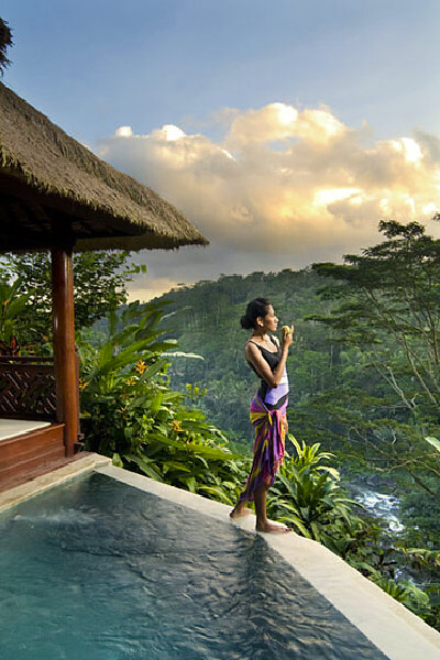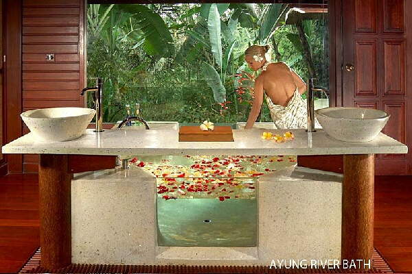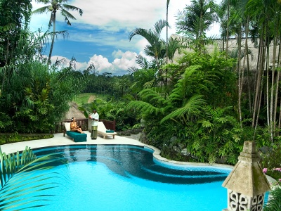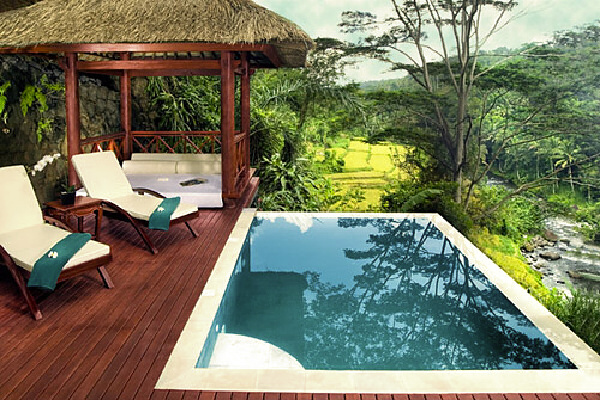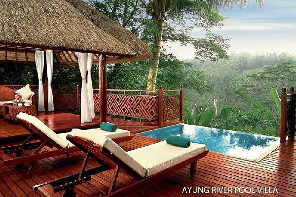 в центральной части о. Бали в районе Убуд (Ubud), на берегу реки Аюнг, в 45 минутах от международного аэропорта "Ngurah Rai".