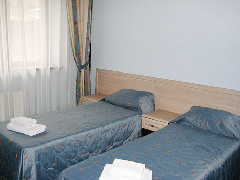 - Стандартный 3-местный: (выбор: односпальная кровать 3 или одна с двуспальной, двуспальная кровать, прикроватные тумбочки, шкаф, журнальный столик, тумба под холодильник, туалетный стол с зеркалом, стулья, вешалка, зеркало, кондиционер, телевизор, холодильник, телефон, набор посуды, пляжные полотенца, санузел: с душем, туалетные принадлежности, балкон: кроме 4 этажа: оборудован мебелью и сушилкой, сервис: room-сервис (24 ч), Wi-Fi платно, услуги телефонной связи по территории отеля, уборка номера 1 раз в день, смена постельного белья 1 раз в 3 дня, смена полотенец 1 раз в день)