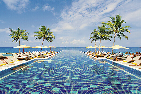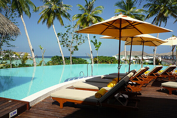 - Sunset Ocean Pool Villa (114 м², макс. 3 или 2 + 1 чел.). Водные виллы с видом на закат. По наполнению идентичны номерам Ocean Water Villa, но дополнительно имеют частный бассейн на террасе. Услуги Island Club включены.