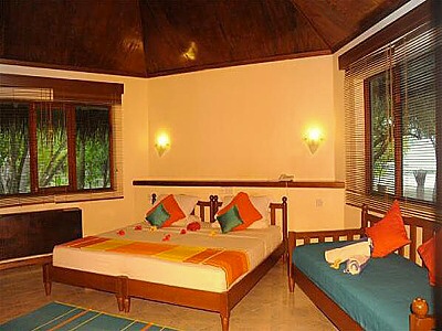 Beach bungalow – бунгало на берегу с видом на океан. Кровать King size или TWIN, меблированная веранда, кондиционер, вентилятор. Спальня с зоной гостиной, мини бар (платно), принадлежности для приготовления чая/кофе, телефон, ТВ, сейф (бесплатно), ванная с душем, фен.