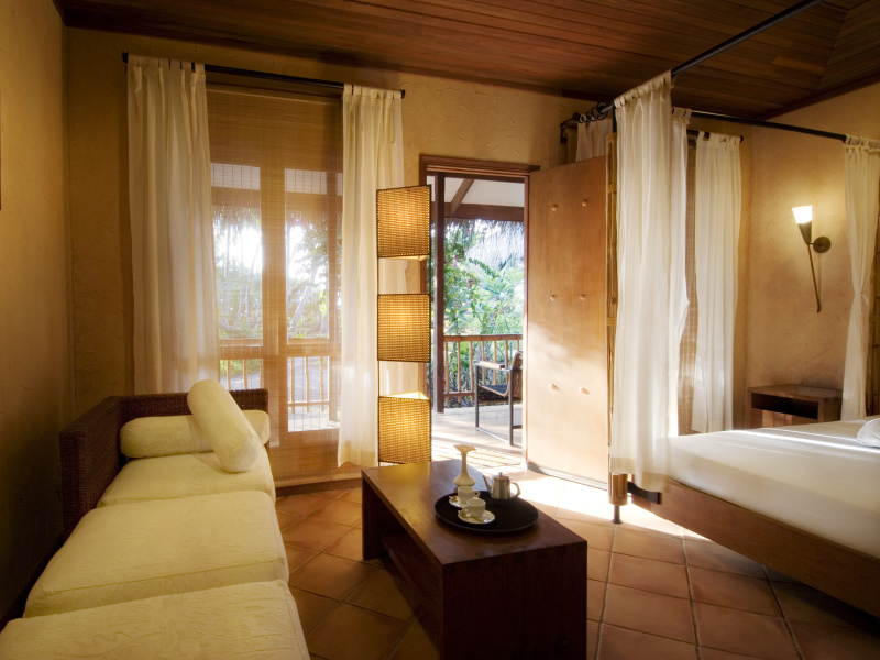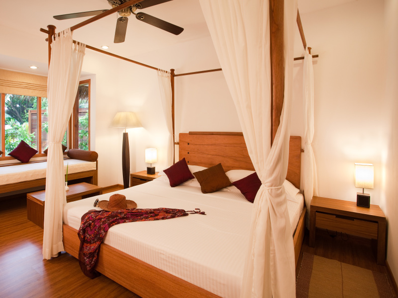 - Beach Villas (70 кв.м)- отдельностоящие виллы, разбросанные среди богатой растительности острова, всего в нескольких шагах от пляжа. Дополнительно : кровать с балдахином, терраса , душ на открытом воздухе
