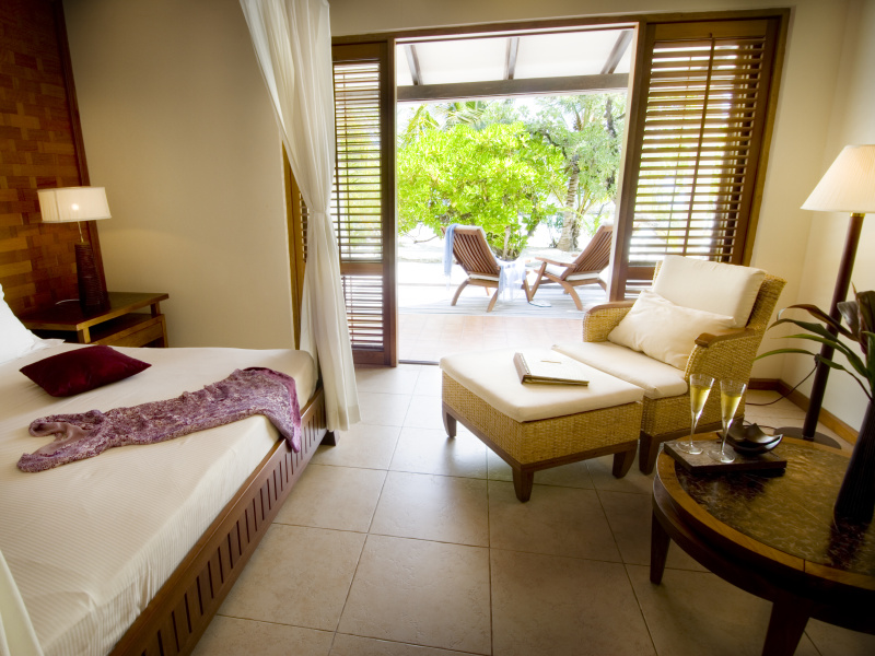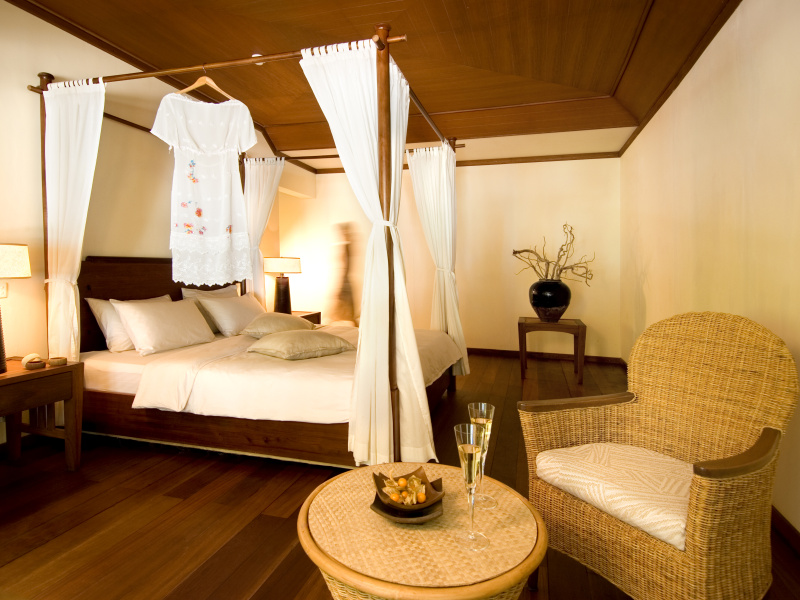 - Honeymoon Beach Villas ( 110 кв.м)- специально созданы для молодоженов, приезжающих на свой медовый месяц . Эти просторные виллы с одной спальней и отдельной гостиной комнатой . Внутри: кровать с балдахином, диван, широкоформатный TV экран, DVD-плеер, iPod станция, кофе машина для эспрессо, просторная ванная комната с двумя раковинами для умывания, дождевым душем, ванной, джакузи для двоих и небольшим собственным садом.