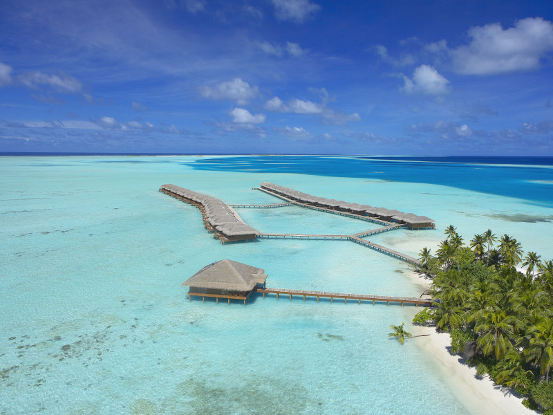 - Lagoon Suite (152 м², макс. 2 чел.). Отдельно стоящие водные виллы, не соединенные с островом мостом. Кровать king size с балдахином, джакузи на двоих, душ на открытом воздухе. Зона для отдыха, просторная терраса. Для переездов на остров имеется персональная лодка дони.
