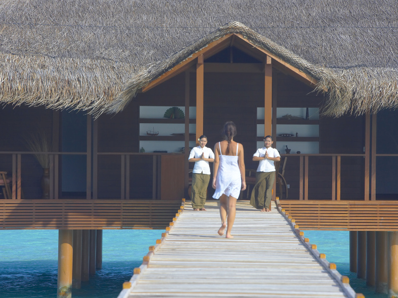 - Water Villa (60 м², макс. 2 чел.). Отдельно стоящие водные бунгало с кроватями king size или раздельными twin. Раздельные ванна и душ, большая терраса с шезлонгами, мальдивскими качелями и прямым спуском в воду.