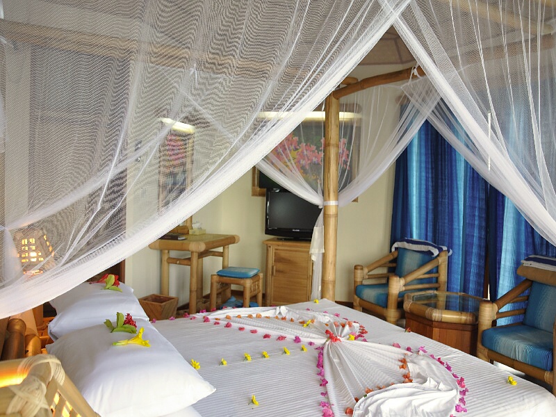 - Deluxe (24 кв.м.) – номера в береговых бунгало на 3 или на 2 номера, несколько номеров в отдельно стоящих бунгало. Спальня (на полу плитка), ванная комната с душем, небольшая терраса.