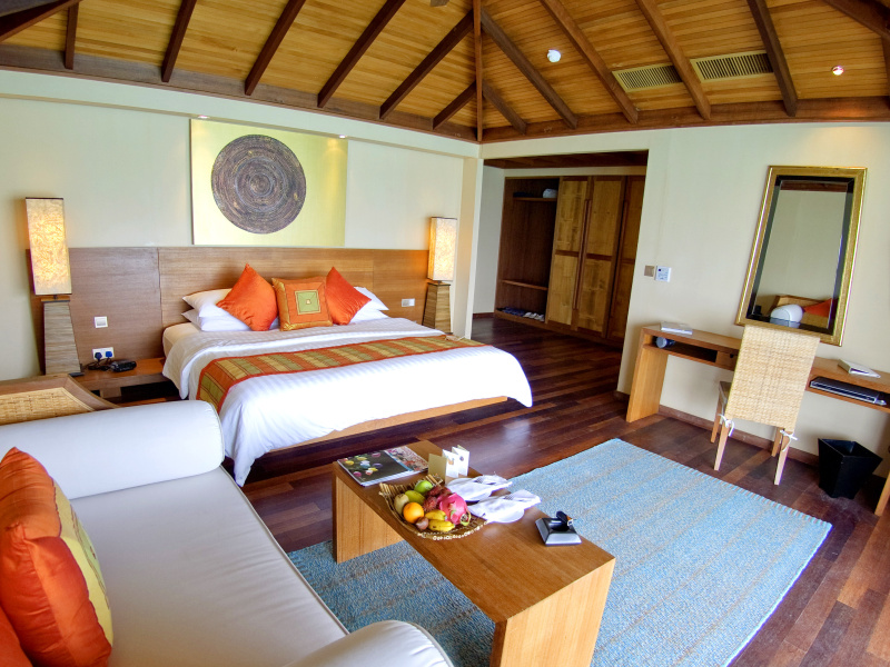 - Over Water Bungalow (62 м², макс. 2 чел.). Бунгало на сваях. Кровать king-size, постельное белье из египетского льна, терраса с прямым выходом в воду.