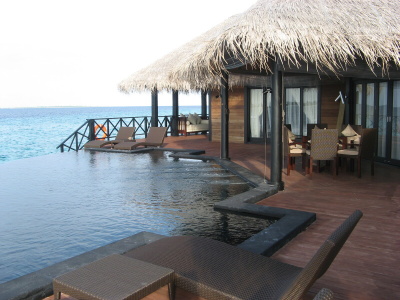 - Grand Water Pavilion with pool (350кв. м.) - Вила над водой с панорамным видом на океан. Две спальни, две ванные комнаты с джакузи, просторная гостиная с LCD TV (40) , обеденная зона, большая терраса с бассейном.