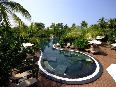 Идиллический уединенный отель исключительно высокого уровня, окружен лагуной с коралловыми рифами и белым песчаным побережьем. Атмосфера отеля позволяет почувствовать себя изолированными от всего мира, но в тоже время комфортно, как у себя дома! Отелю принадлежат два соседних необитаемых острова, на одном из которых предлагаются моторизованные вида спорта, а другой служит для проведения свадебных церемоний и романтических ужинов.