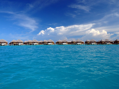 - Water Villas (100 кв.м.)- водные виллы, состоят из спальни, ванной комнаты, дополнительно имеют террасу с зоной для загара и бассейн (3 х 4 м.). Максимальное размещение: 2 взрослых + 1 ребенок (до 12 лет)