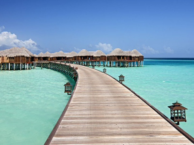 Отель Constance Halaveli Resort состоит из фешенебельных вилл, выполненных в традиционном мальдивском стиле, расположенных на двух живописных островах, соединенных деревянными мостиками.