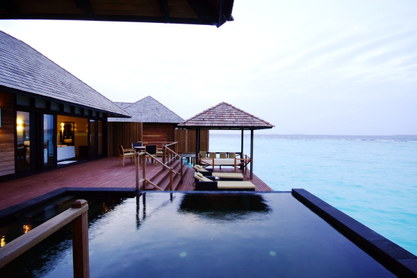 - Infinity Water Villa (76 кв.м., общая площадь - 155 кв.м) - Вилла на воде. Спальня, гостиная,ванная комната с панорамным видом на океан, терраса с бассейном и обеденной зоной, спуск в воду. Hidden Retreat - 205 кв.м - Береговая вилла, 2 спальни, гостиная, ванная комната с гидромассажной ванной, сад с бассейном и беседкой.