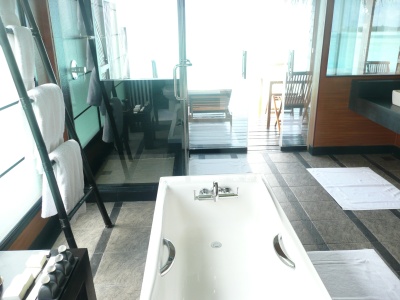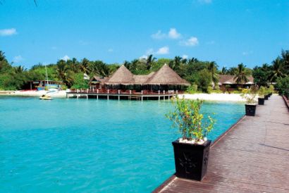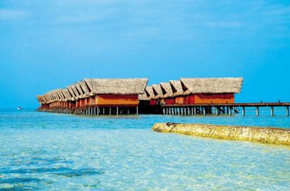 Ocean Villas (44 кв.м) - одноэтажные виллы на воде, спальня с гостиной зоной, ванная комната, душ и туалет объединены, 2 раковины, небольшая терраса с обеденной зоной и индивидуальным спуском в лагуну,шампанское и фрукты по приезду, DVD проигрыватель, сейф, набор для приготовления чая/кофе, кофе-машина, халат, тапочки, 24 батлер -сервис.
