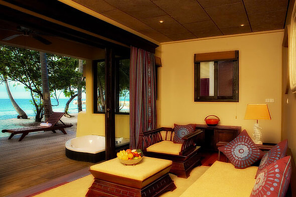 - Beach Villa (96 м², макс. 3 или 2+1 чел.). Одноэтажные береговые бунгало с панорамным видом на океан состоят из спальни, ванной комнаты на открытом воздухе и гостиной с выходом на террасу.