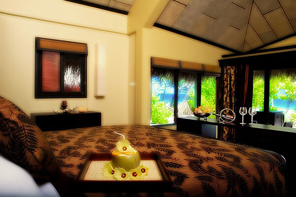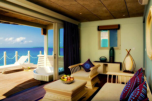 - Ocean Villa (147 м², макс. 3 чел.). Расположенные на сваях в водах лагуны двухэтажные бунгало состоят из гостиной, открытой террасы с джакузи, ванной комнаты, частично на открытом воздухе с ванной и душем, спальня на 2 этаже. Из соображений безопасности размещение детей младше 12 лет в данной категории номера не разрешено.