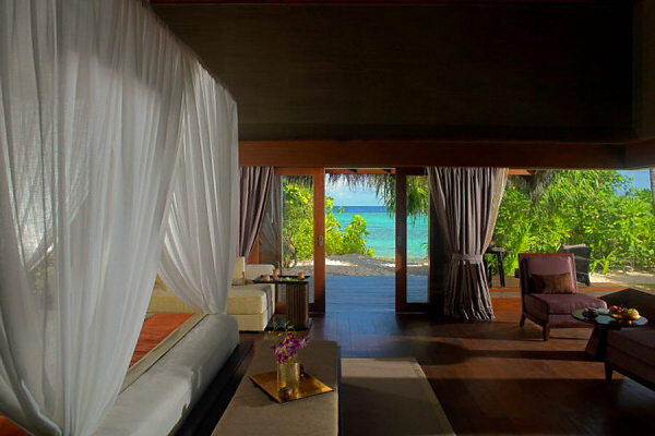 - 2-bedroom beach suite with pool (302 кв. м): двухуровневый номер. Терраса с открытым персональным бассейном, гостиная, 2 спальни (одна – с кроватью king-size, вторая – с двумя отдельными кроватями), 2 ванные комнаты (одна – с ванной и душем с функцией «тропический дождь» на открытом воздухе). Вид на пляж и океан. Выход к пляжу.