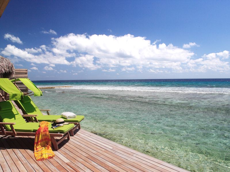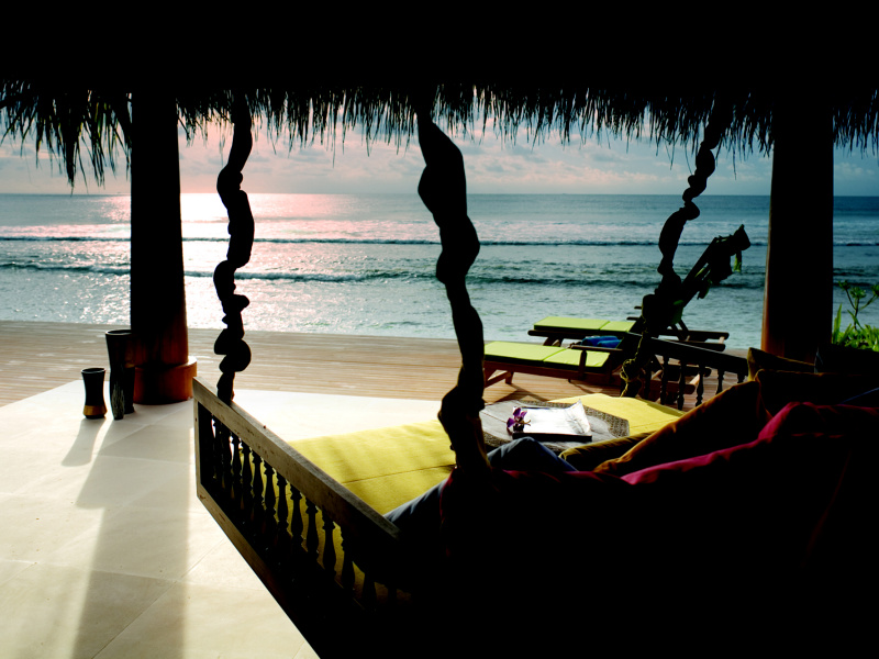 - Ocean house with pool терраса с открытым персональным бассейном (35 кв. м) и обеденной зоной на открытом воздухе (стол на 4 персоны), спальня, гардеробная зона, парная, ванная комната на открытом воздухе с ванной и душевой кабиной с функцией «тропический дождь». Расположены на пляже. Вид на океан и сад.