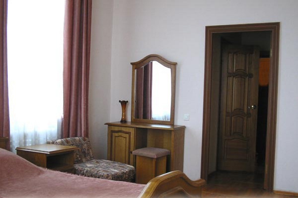 - Мебель: полутороспальная кровать, прикроватные тумбочки, набор мягкой мебели в 2-х комн номере, шкаф