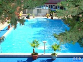 открытый бассейн (9х21) с пресной водой, открытый детский бассейн (6 х 6) с пресной водой, сауна, тренажерный и фитнес залы с новейшим оборудованием (в том числе и тренажеры для профессионалов).