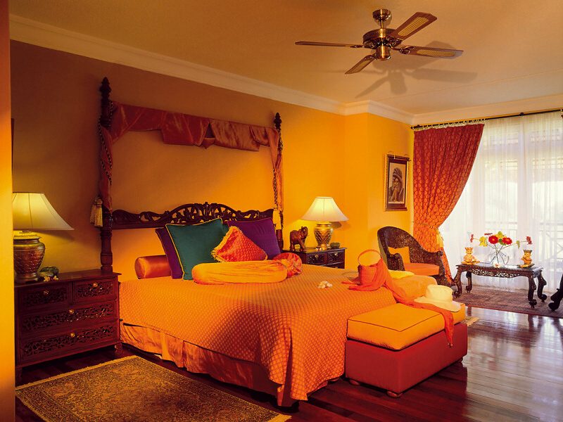 - 1 Maharajah Suite (240 кв. м) – номер в индийском стиле. Спальня, гостиная, большая ванная комната, просторная терраса с видом на сад и на океан; винтовая лестница номера ведет на крышу коттеджа с террасой и джакузи. Номер обставлен эксклюзивной индийской мебелью и аксессуарами.