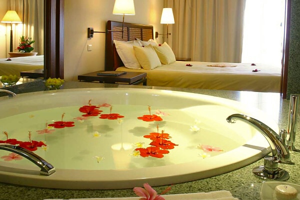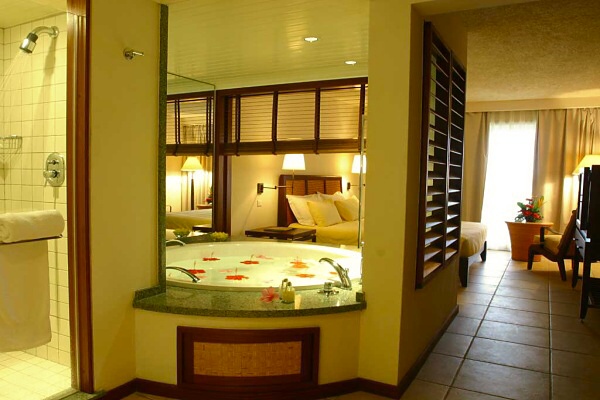 - 6 Deluxe Suites (96 м2) – в 2-х этажных бунгало с видом на океан. Спальня с ванной комнатой, гостиная, дополнительно душ и туалет. Терраса или балкон.