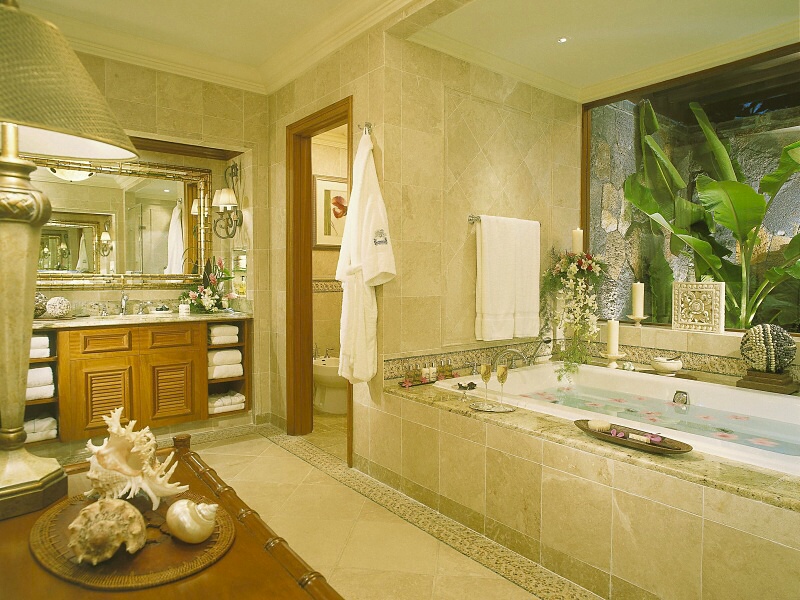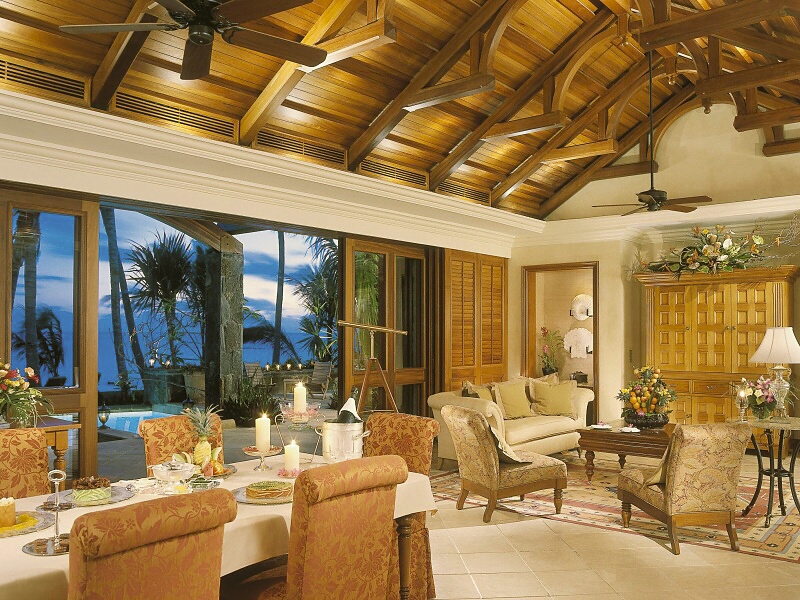 - The Villa (622 кв м) – вилла в колониальном стиле, с панорамный видом на океан. 2 спальни: одна – с кроватью King-size, другая – с 2-мя кроватями Queen- size, 2 ванные комнаты с джакузи. В гостиной и кухне есть все необходимое для вечеринки или романтического ужина – изящный фарфор, хрусталь и столовое серебро. Кабинет, терраса с бассейном, душ в мини-садике с видом на океан, место для BBQ, свой выход на пляж. Максимальное размещение: 6 человек