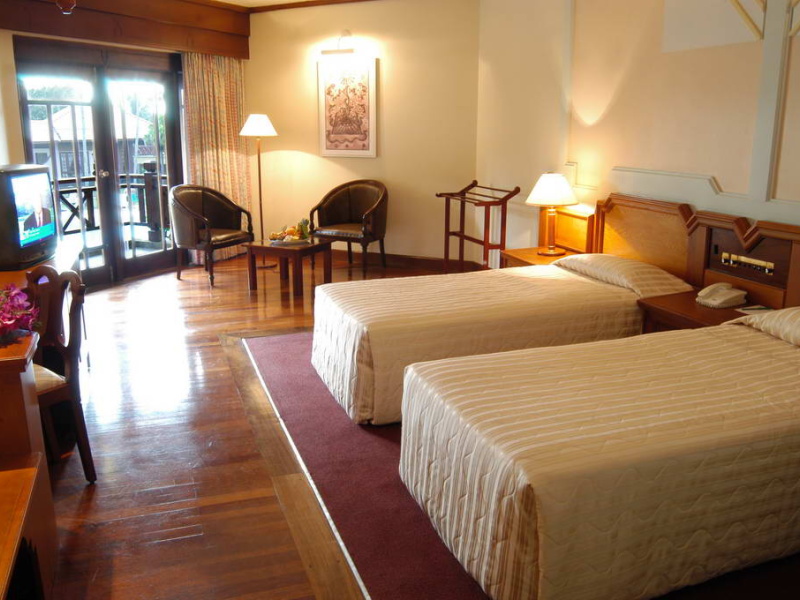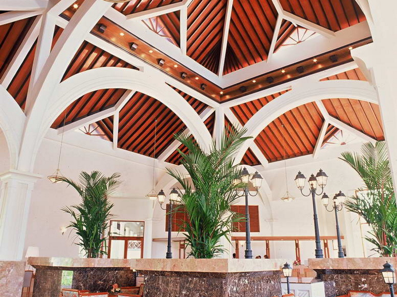 oтель выполнен в очень «теплом» стиле, который создает сочетание кирпича и дерева. 3-х этажные корпуса отеля компактно расположены в зелени пальм вокруг «протекающего рекой» большого бассейна с джакузи.
