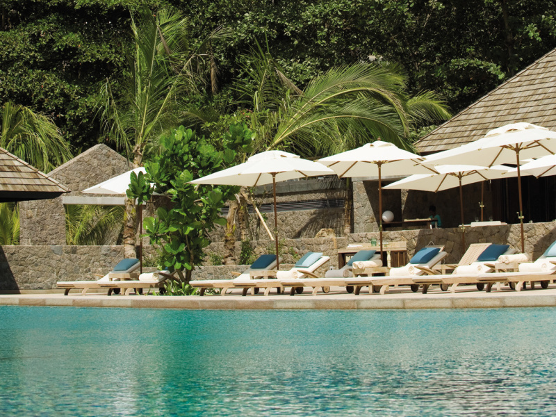 - 10 Garden View Villas (186 кв.м) - на гранитных террасах на склоне горы рядом с берегом отдельно стоящие виллы с открытой террасой (115 кв.м) для дневного отдыха, шезлонгами и столовой зоной на 3 персоны, индивидуальным бассейном (28 кв.м), мини-садик с душем под открытым небом, спальня и ванная комната открытого плана. Максимальное размещение - 2 взрослых, или 2 взрослых и 2 детей до 12 лет.
