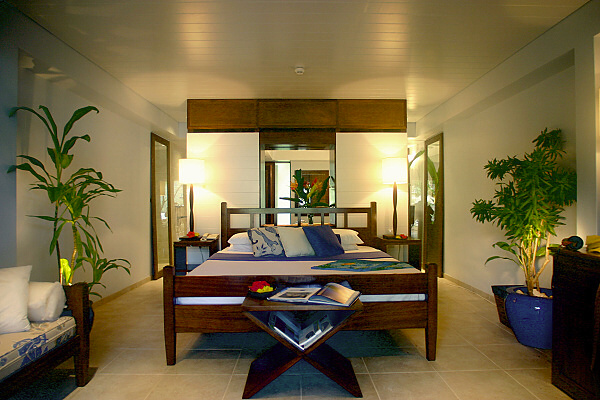 - 6 Allamanda Suite (65 кв.м) - номера в отдельных бунгало с видом на океан. Спальня с гостевой зоной, ванная комната, просторная терраса.
