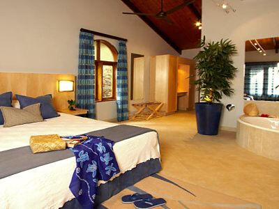 - 12 Black Parrot Suites (62 кв.м) - номера расположенные в отдельных, разместившихся на склоне горы бунгало с просторных террас которых открывается прекрасный панорамный вид на океан и сады отеля. Номера состоят из спальни с кроватью king-size под пологом, просторной зоной гостиной и открытой угловой ванной, отдельной ванной комнаты и террасы с зоной отдыха. Номера придутся по вкусу тем, кто на отдыхе ценит уединение и красоту пейзажей. NB!