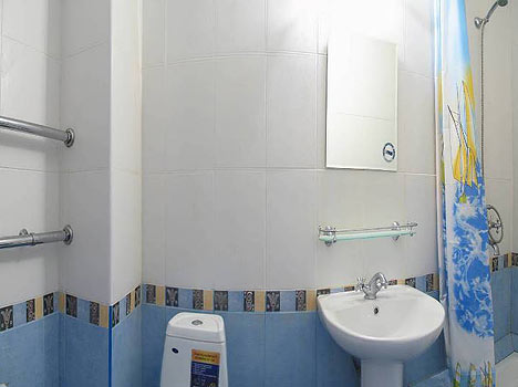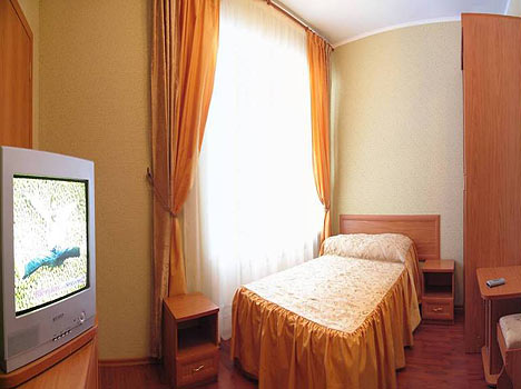 - Стандартный 1-местный 16 кв.м (мебель: односпальная кровать или двуспальная, прикроватные тумбочки, шкаф-купе, вешалка, зеркало, телевизор, мини-холодильник, набор посуды, санузел: с душем (поддон), туалетные принадлежности, уборка номера ежедневно, смена постельного белья раз в 3 дня, смена полотенец ежедневно)