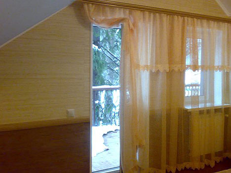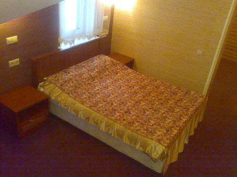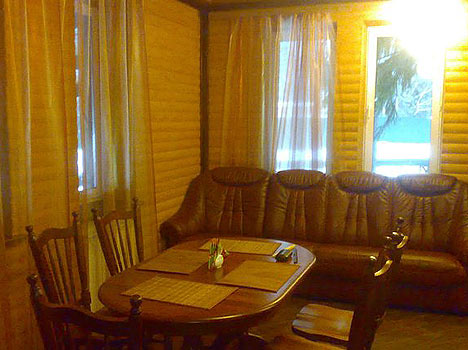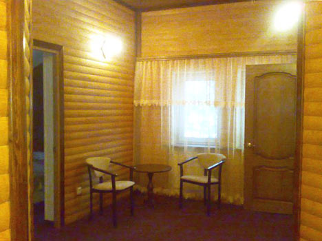 - Люкс 6-местный (мебель: двуспальная кровать, прикроватные тумбочки, раскладной диван, шкаф-купе, стол, стулья, вешалка, зеркало, телевизор ЖК, DVD, холодильник, электрочайник, набор посуды, чайный набор посуды, санузел: с сауной: с душем, 2 санузла, фен, туалетные принадлежности, балкон, уборка номера ежедневно, смена постельного белья раз в 3 дня, смена полотенец ежедневно)