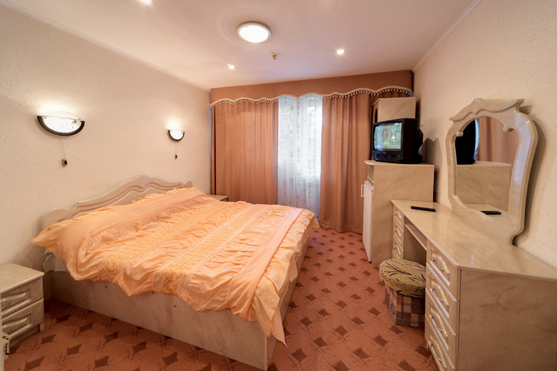 - однокомнатный 2-местный номер, общая площадь 18 м.кв. 2 односпальные кровати, ТВ (кабельное), холодильник, столовая посуда, санузел (душевая кабина или ванная, умывальник, унитаз, количество полотенец – 2 на 1 чел. Лоджия.