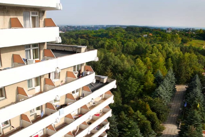 - поездом или самолетом до г. Львов, далее электропоездом или автобусом до г. Трускавец (100 км), далее маршрутным такси до санатория;