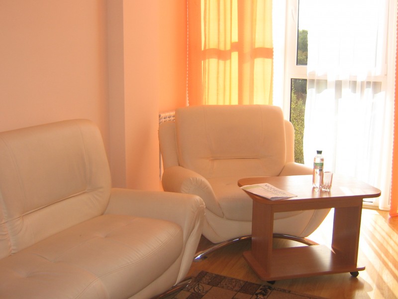 - Двухкомнатные 2-местные номера классов «люкс» и «стандарт»: санузел, новая сантехника, одна двуспальная либо две односпальных кровати, мягкая мебель, телевизор, холодильник, набор для глажки, необходимая посуда, электрический чайник. В номере может разместиться до 4 человек.
