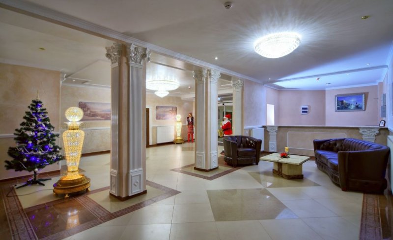 - двуспальная кровать, телевизор; гостиной: диван, телевизор, холодильник, электрочайник, чайный сервиз; а также комнаты отдыха: диван, мягкое кресло, журнальный стол, санузел (душевая кабина, туалет, умывальник, биде, фен). Площадь номера – 42-51 кв.м.