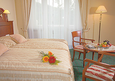 Санаторий расположен на возвышенности, в собственном парке с теннисными кортами и удобной связью с центром - фуникулером.