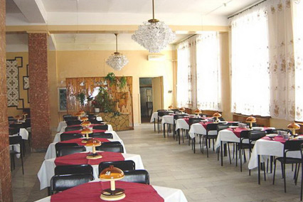 Питание осуществляется в 3-х залах: общий зал на 234 посадочных места; зал «Люкс» на 20 посадочных мест, зал для родителей с детьми (летний период) на 32 места. Питание диетическое 3-4-5 разовое по заказному 7-ми-дневному меню с учетом сезона (летний, зимний вариант).
