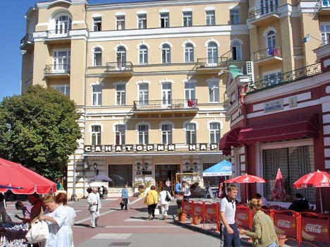 В центре Кисловодска на знаменитом Курортном бульваре, недалеко от лечебного парка, находится один из старейших санаториев города – «Нарзан». Его главный корпус располагается в старинном здании, который раньше назывался «Гранд-Отель». В нем часто останавливалась элита общества и интеллигенция, здесь отдыхали В.Маяковский, Ф.Шаляпин, А.Дункан, Л.Собинов.