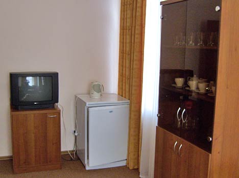 - Оборудование: телевизор, холодильник, электрочайник, чайный набор посуды