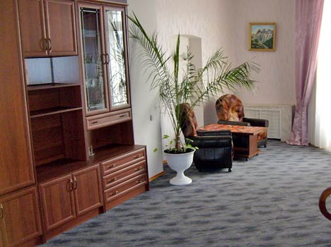 - Мебель: двуспальная кровать 2 шт., прикроватные тумбочки,набор мягкой мебели, шкаф, шкаф для посуды, стол, стулья,зеркало