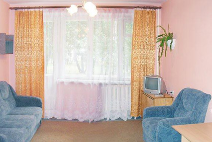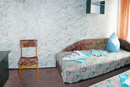 - Мебель: односпальная кровать 2 шт., прикроватная тумбочка, набор мягкой мебели, стул