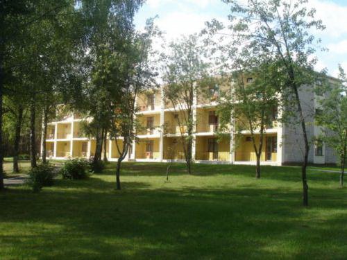 Три трехэтажных спальных корпуса и один пятиэтажный главный корпус: