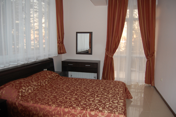 - «Люкс» 3-комнатный (с балконом, 2-4-этажи, 70 м.кв.) – две изолированные комнаты, одна гостиная общая, две 2-спальных кровати, раскладной диван, обеденный стол, холодильник, кондиционер, телевизор, санузел с душем, сейф. 4 основных места, 2 дополнительных.