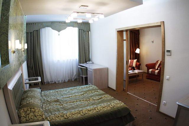 - В комнате: две раздельные кровати (1.20 х 2м), прикроватные тумбочки, туалетный столик, зеркало, два стула, платяной шкаф, плазменный телевизор, мини-бар. Есть номера с раскладным креслом-кроватью – дополнительное место.