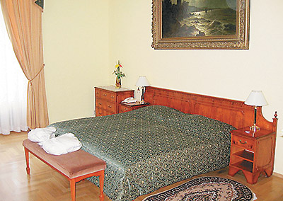 47 номеров (9 апартаментов, 1 апартамент люкс, 2 президентских апартамента, 26 одно и двухместных номеров, 5 двухместных номеров люкс, 2 двухместных номера с балконом).