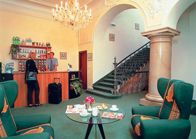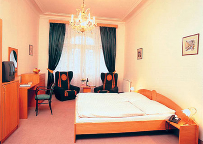 Отель расположен прямо в центре города, на берегу речки Тепла, 100 метров от источников.