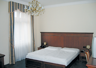 - DBL Lux A: в категории люкс А два типа номеров: 1/ - отреставированный, просторный номер с балконом, с большой ванной комнатой, с видом в парк, на южную сторону, 2/ - номер с мебелю в стиле Людовика, без балкона, старая ванная.