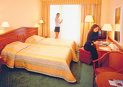 - Apartment: Два отдельных номера, соединенных коридором (4 кровати). Номер с ванной комнатой, туалетом, телевизором, радио, телефоном, Wifi подключением к интернету, минибаром, сейфом, феном, халатом, фроте тапочками, кондиционером. Вид на парк.