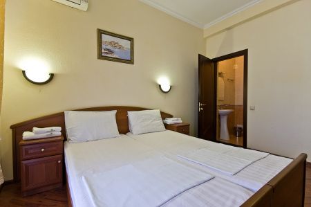 В номере: 2 ЖК телевизора "Samsung", двуспальная кровать, диван, стол, стулья, шкаф-купе, сервиз на 4 персоны, зеркало, прикроватные тумбочки, 2 балкона (8 и 14 кв.м), 2 сплит-системы в каждой комнате, санузел, душевая кабина, фен, халат, полотенца, мыло, туалетная бумага, ортопедические матрасы; на балконах: стол, стулья; интернет – WI-FI, спутниковое ТВ, телефон, холодильник. Максимальное размещение - 4 человека.