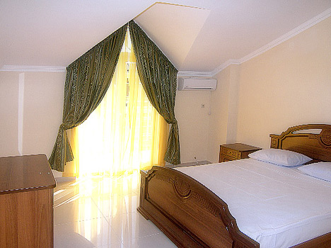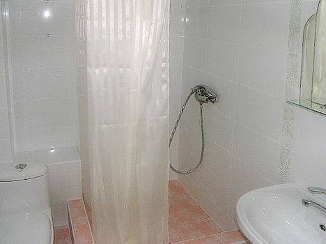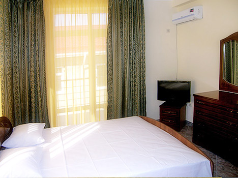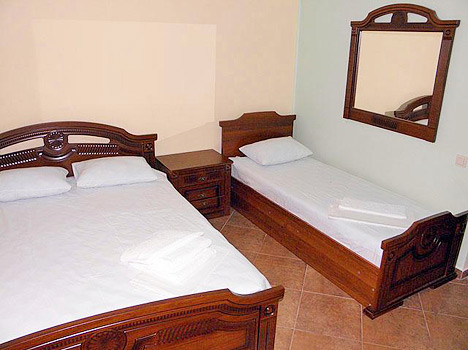 - односпальная кровать 4 или 1 двуспальная и 2 односпальных, прикроватные тумбочки, шкаф, комод, сплит-система, телевизор, холодильник, санузел: с душевой кабиной, балкон: оборудован мебелью